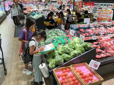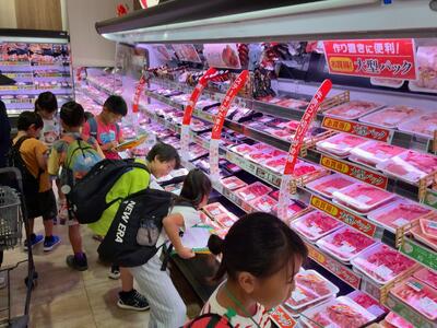 3年生が社会科の学習でイオンに見学に行きました。グループごとにお店の方からお話を聞き、売り場の工夫や建物のやさしさについて調べました。子どもたちは真剣に観察し、興味を持って活動することが出来ました。