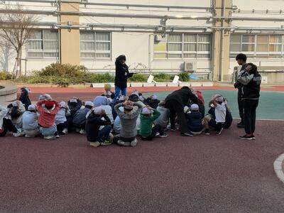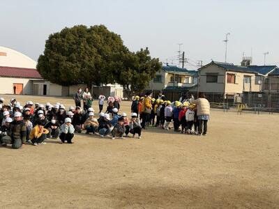 地震、火事を想定した避難訓練を行いました。今回は、藤井寺南幼稚園、ななこども園と合同で行いました。藤井寺南幼稚園、ななこども園さんは、地震発生後の本校までの避難経路を確認するなど、子ども達の一生懸命取り組む姿が見られました。