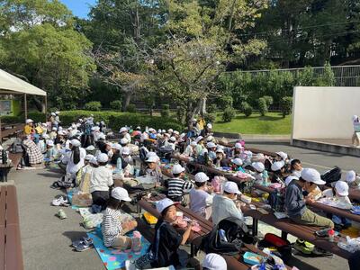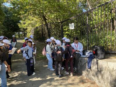 園内では、各班でクイズに答えながらまわりました。道に迷いながらも班で協力してゴールにたどり着いていました。おいしいお弁当とおやつを食べて、ニコニコの子どもたち。電車のマナーもしっかりと守れて、安全に行くことができました。
