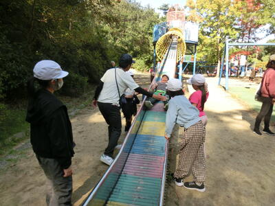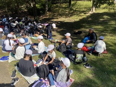 今日は、にこにこ遠足で峰塚公園へ行きました。6年生が中心となり、縦割り班でおにぎりを食べたり、6年生が考えた遊びをしたりして楽しい時間を過ごしました。低学年の児童は「楽しかった!」と大満足でした。6年生ご苦労様でした。