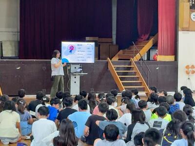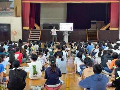 今日は、5年生6年生合同で6月3日に行く大阪万博のテーマや見学できるパビリオンなどについての説明会が行われました。子どもたちはどのパビリオンを選ぼうか興味を持って聞いていました。万博に出展している国についても自主学習などで事前に調べています。せっかく大阪で開かれる万博なので子どもたちの学びや素晴らしい思い出になってほしいと思っています。
