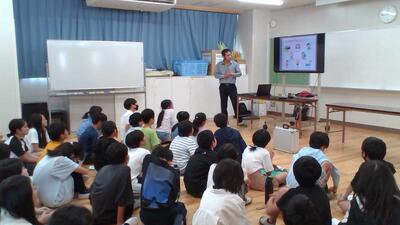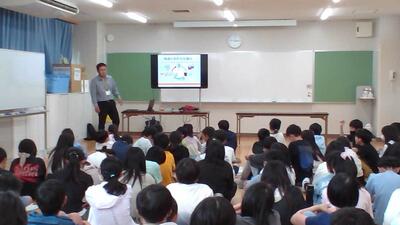 富田林税務署から多田様ら5名の職員の方に来校いただき、「租税教室」を実施しました。税について、「これからの日本の未来を担う子どもたちに、税の仕組みのことを少しでもわかりやすく伝えられたら」という思いで授業をしていただきました。ジュラルミンケースで1億円の札束(ダミー)が登場した時には、歓声があがり、「重い。」などの声があがっていました。