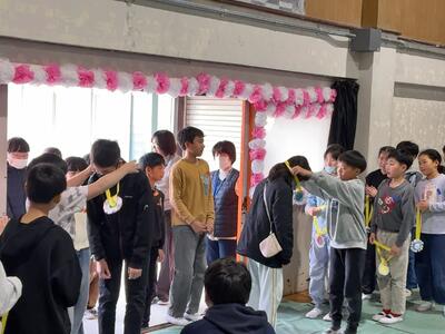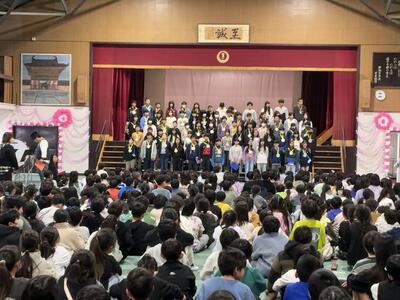お別れ会 投稿: ホームページ管理者 (03/06) カテゴリー: 今日の出来事 全校で6年生との「お別れ会」を行いました。各学年がこれまでお世話になった6年生へ感謝の気持ちを込めて発表し、クラブ活動や委員会、運動会、縦割り活動などへの思い出を振り返りながら「ありがとう」の気持ちを伝えました。中には涙する子どももおり、子ども達の思いやりや優しさが感じられる温かい時間となり、全校で感謝の気持ちを分かち合う会となりました。